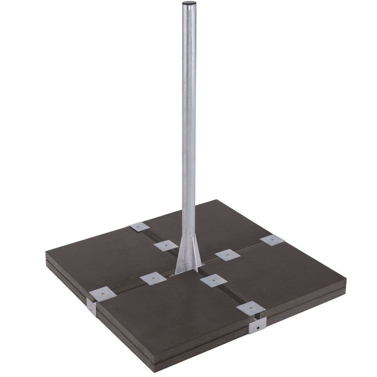 Stativet är utrustat med 8 panelplatser för betongplattor (50 × 50 cm), som ger hög stabilitet. Tack vare det smarta låssystemet hålls plattorna stadigt på plats och risk för glidning elimineras. För ännu högre säkerhet kan 12 eller fler paneler monteras med extra skruvsats.