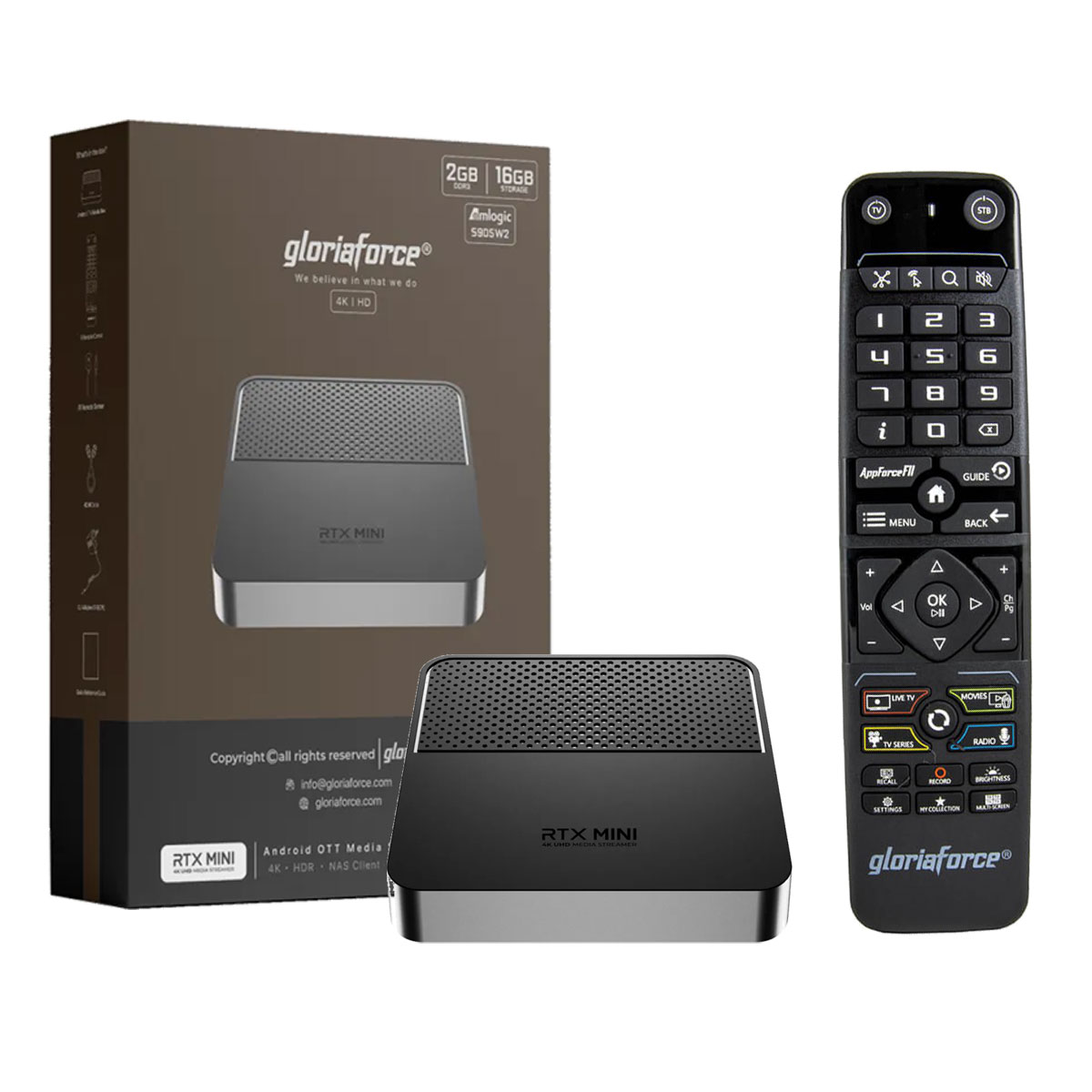 1 × Gloriaforce RTX MINI 4K UHD Android IPTV Box
