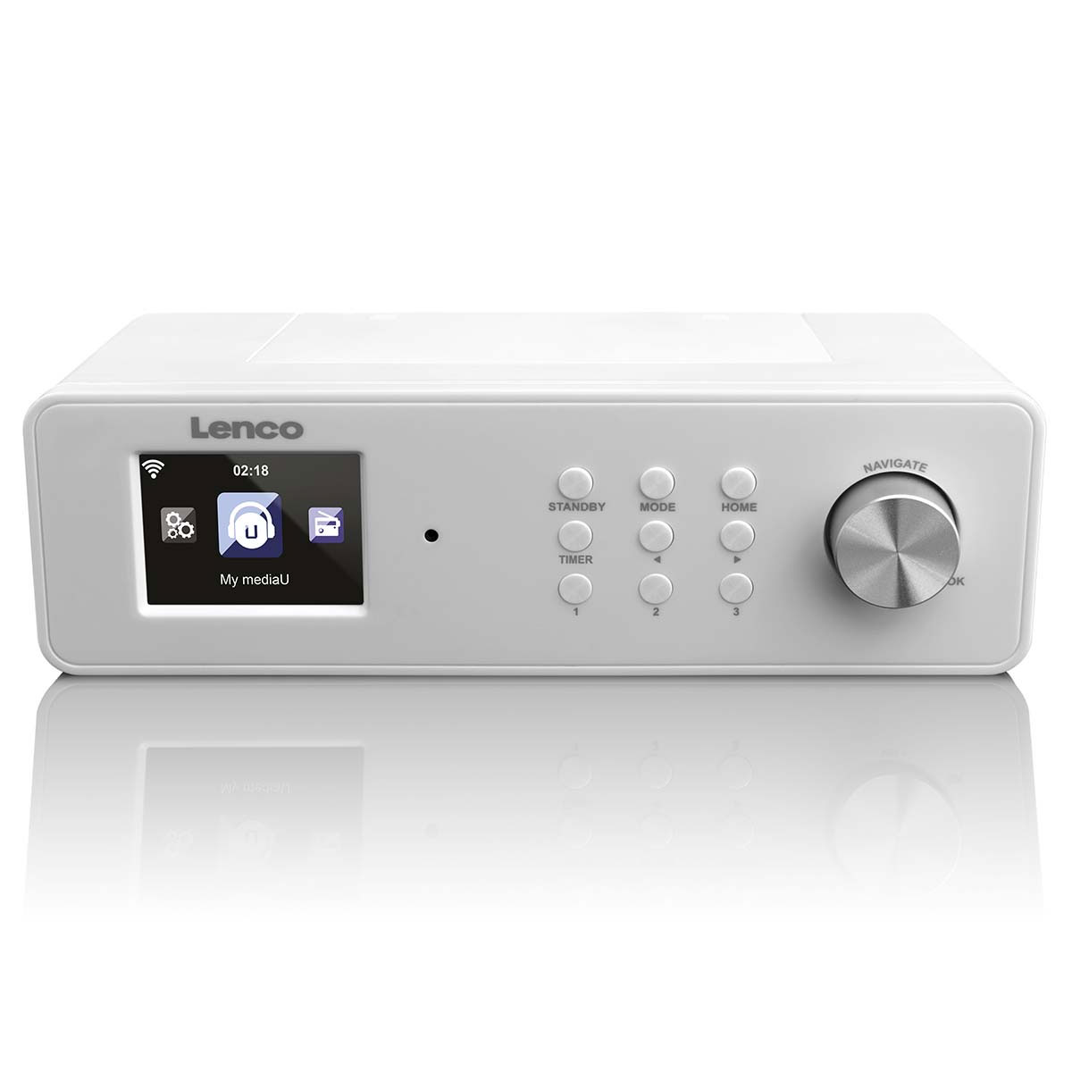 Lenco KCR-2014 Internet Kökradio med FM/RDS, WLAN & App – Vit är en modern och mångsidig köksradio med stilren design, tydliga knappar och en ljusstark färgskärm som gör den enkel att använda i vardagen.