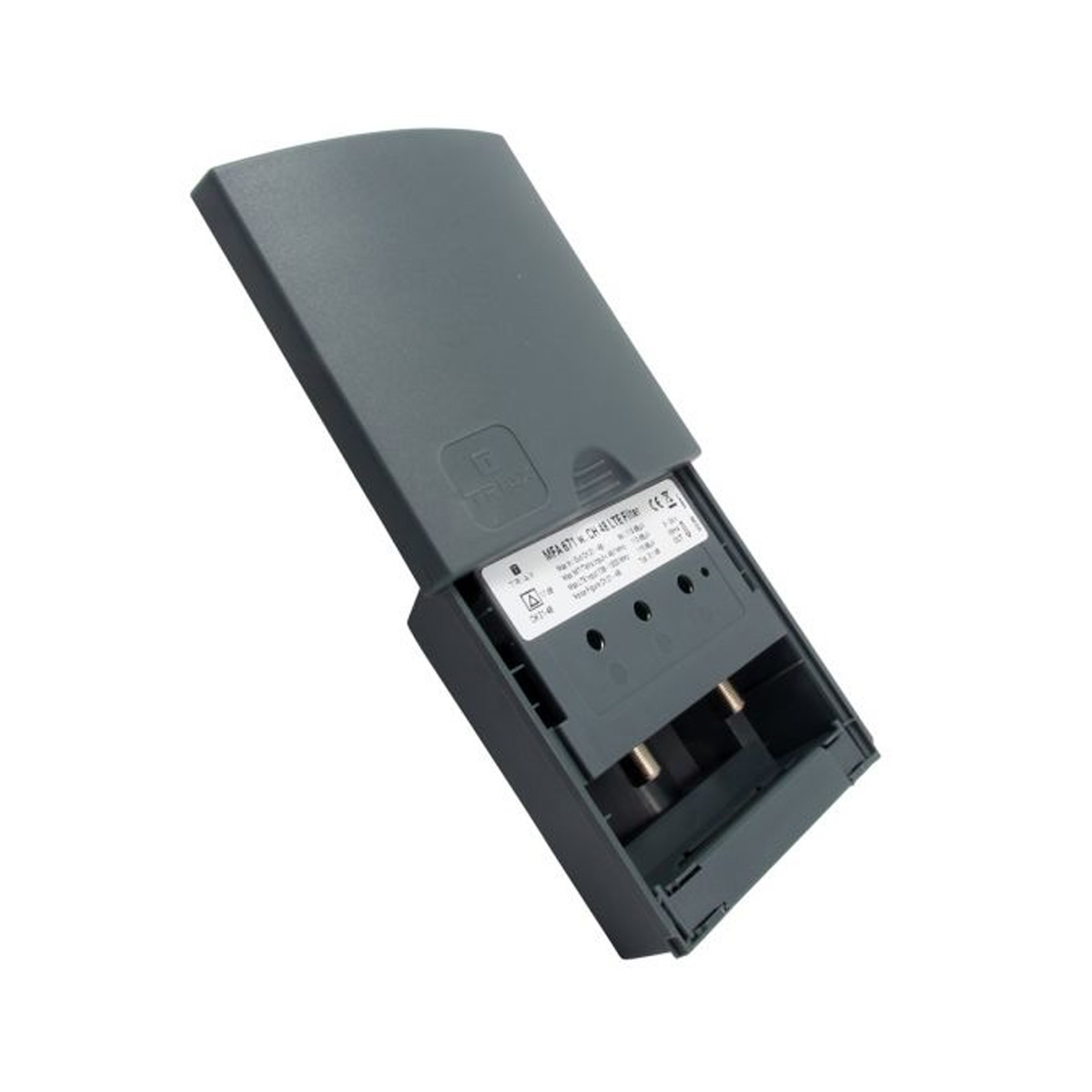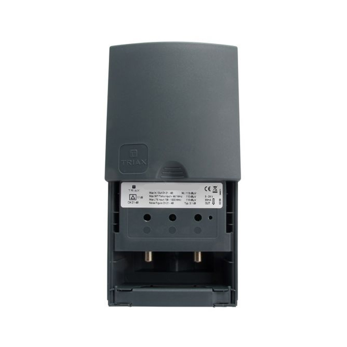 Triax- Mastförstärkare med intern strömförsörjning Den här smidiga antennenförstärkaren förstärker 12db och kräver ingen extern strömförsörjning.